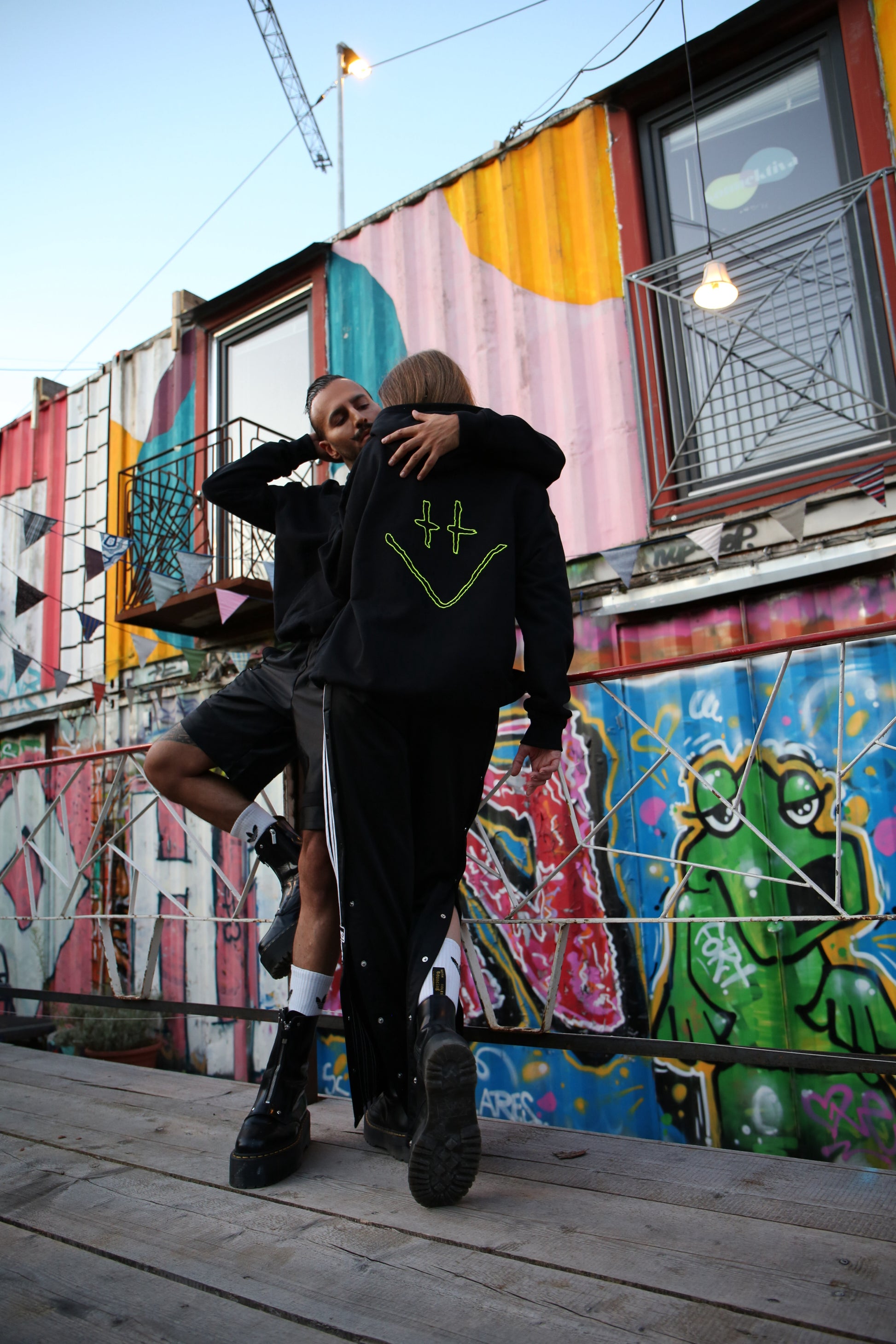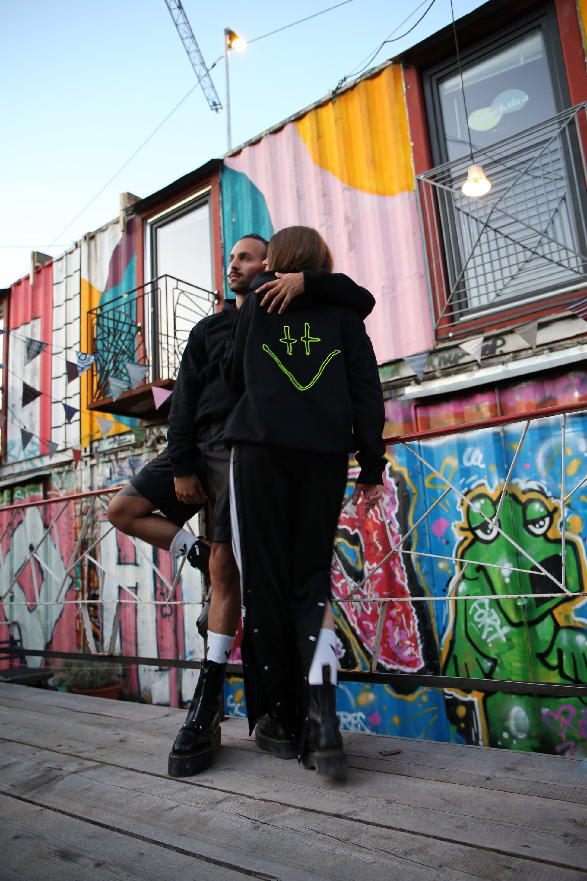 Der Bumble Hoodie– tiefschwarze Baumwolle trifft auf leuchtend-neongelben Smiley.